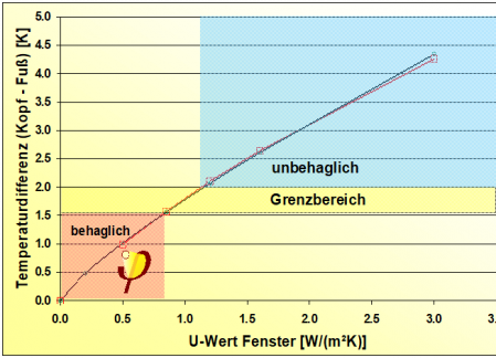 Liegt diese Temperaturdifferenz unter 3K spricht man von behaglichem Wohnklima.