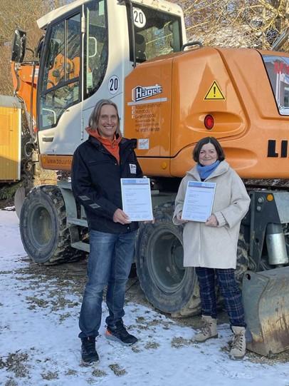 Jutta Braisch und Thomas Hägele unterzeichnen die Bildungspartnerschaft zwischen der Schule an der Donauschleife in Munderkingen und der Baufirma Hägele aus Dürmentingen.